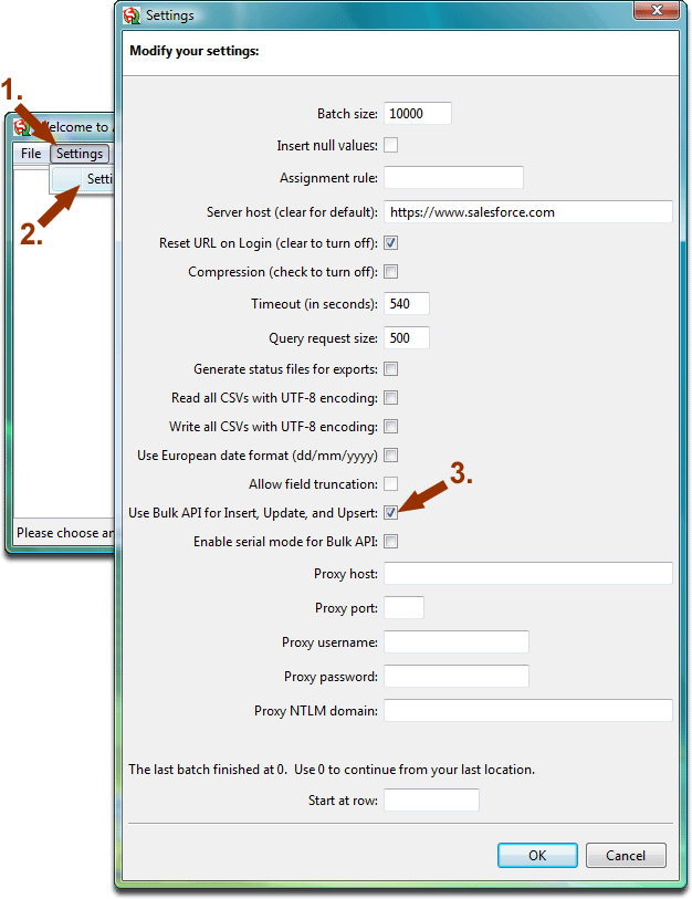 Enabling the Bulk API with the Salesforce Data Loader