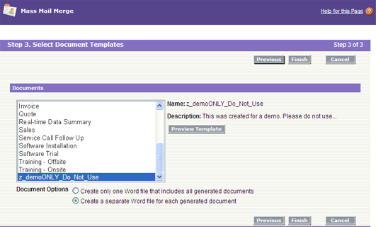 With the functionality activated you can now begin to use it. First you need a mail merge template. Hopefully, you have some already created because you've been using Mail Merge prior to now. If not simply follow the steps outlined in the Mail Merge creation help area: https://na1.salesforce.com/help/doc/en/creating_mail_merge_templates.htm.