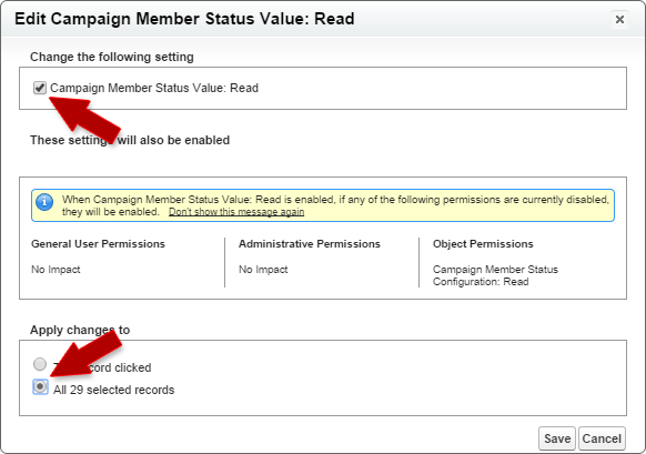 Click the "Save" button and the permission setting will be applied to all of the Profiles you selected.
